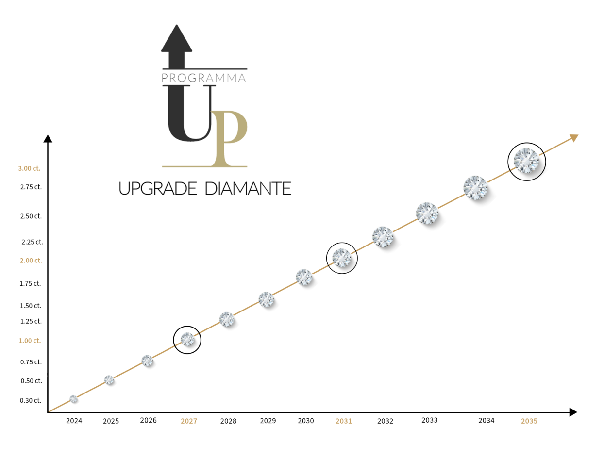 Fai crescere il valore del tuo diamante nel tempo, con un programma graduale personalizzato. Scopri come funziona >