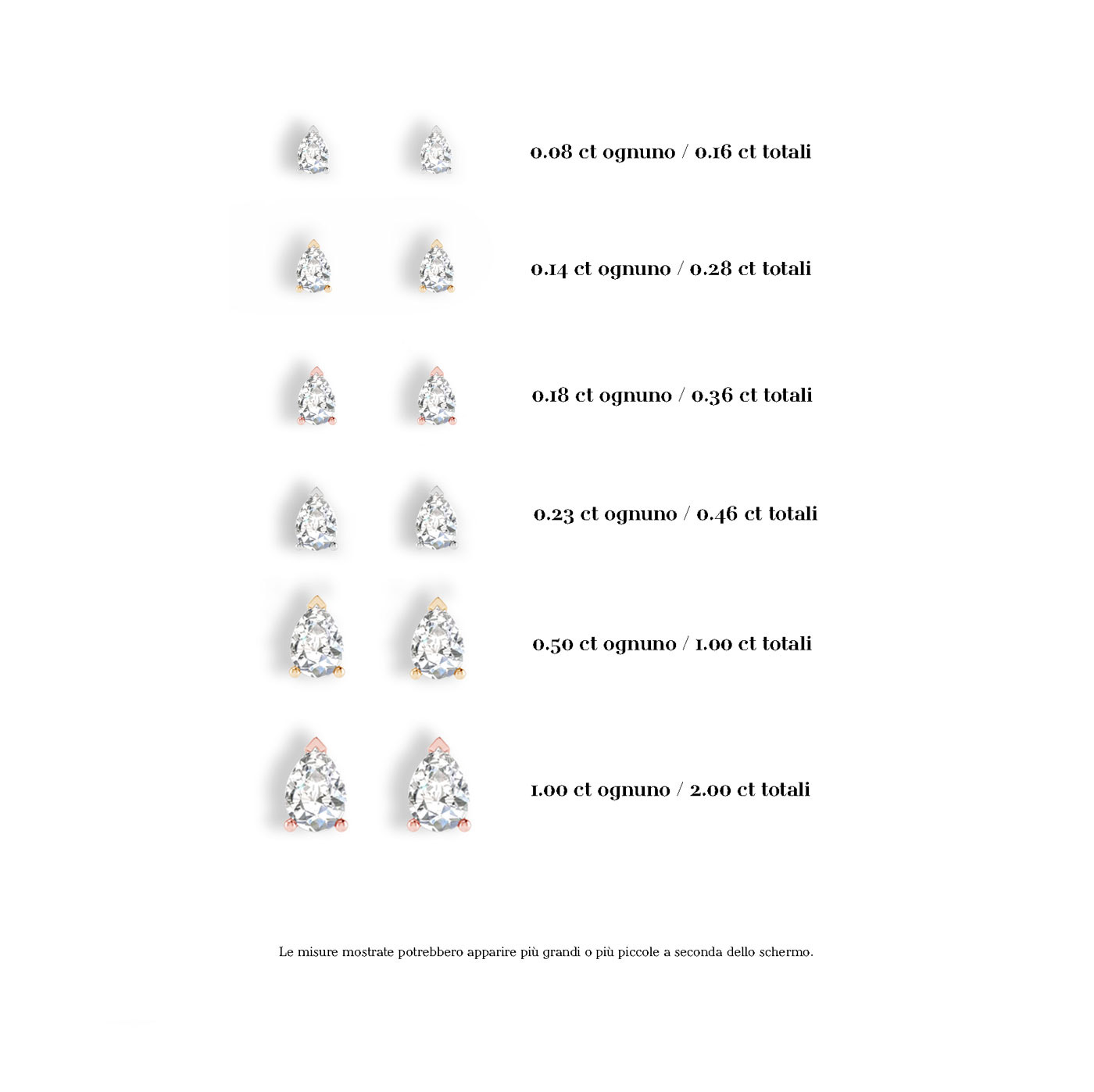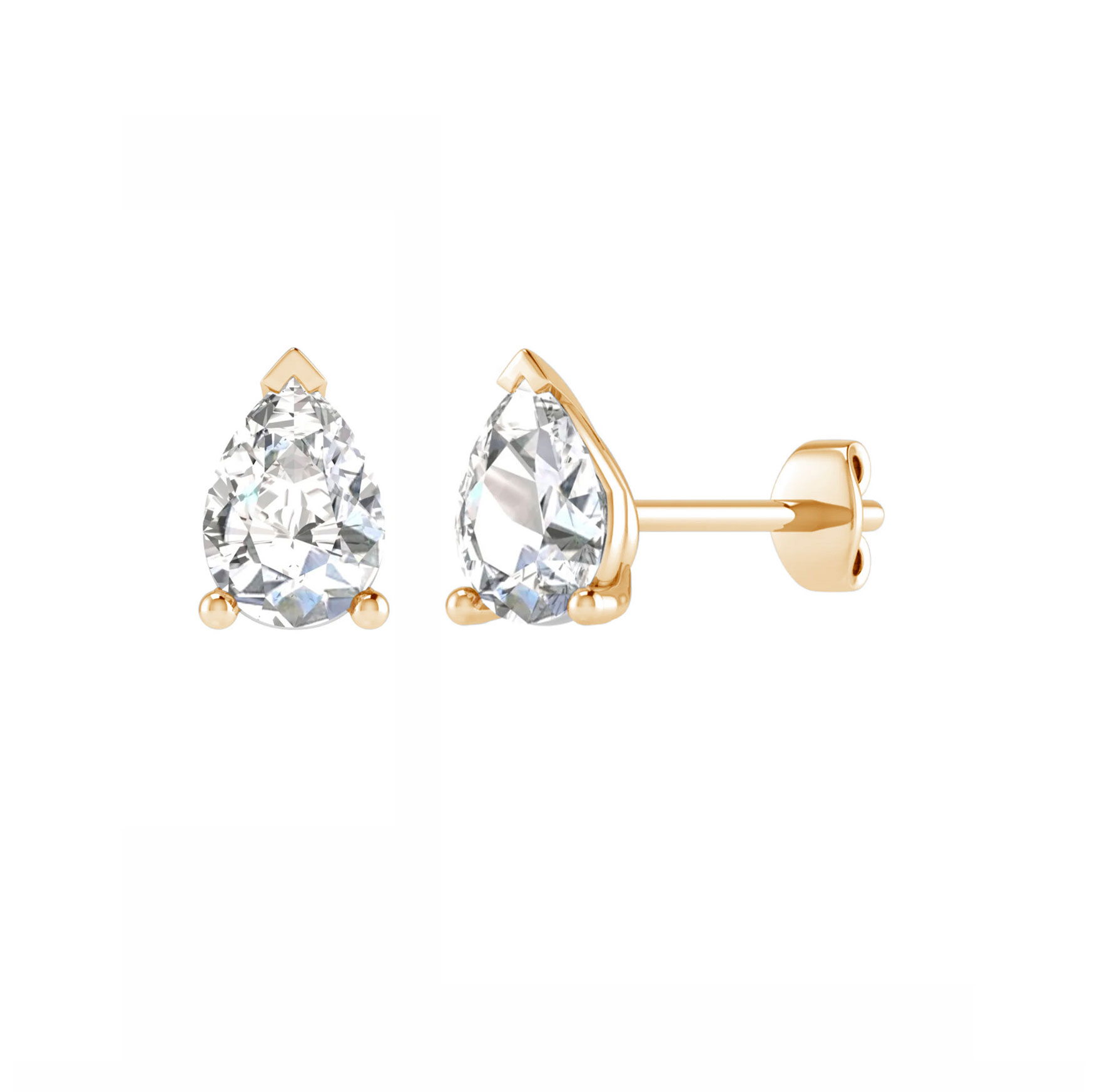 Orecchini punto luce con diamanti naturali taglio a goccia certificati IGI Anversa, realizzabili in oro 18 k bianco, giallo o rosa.