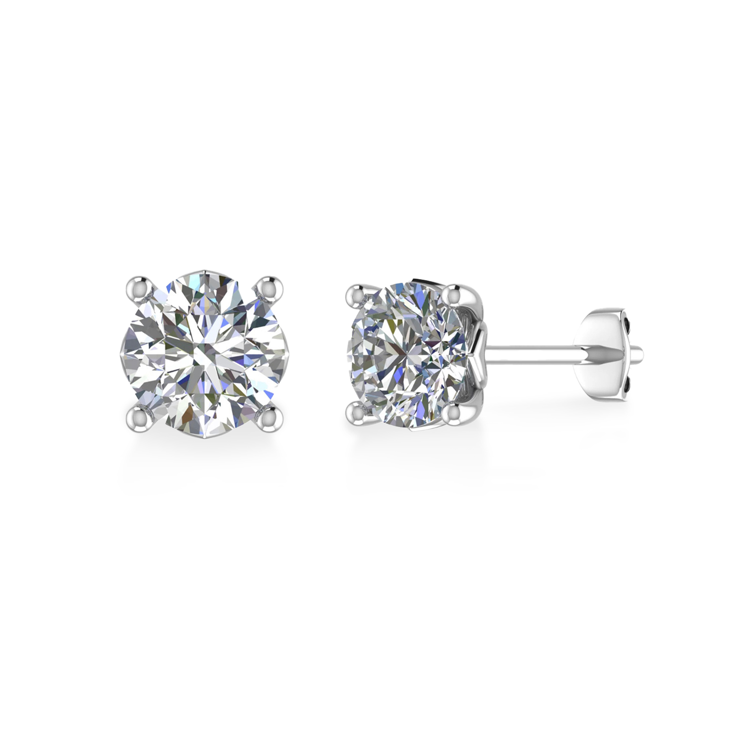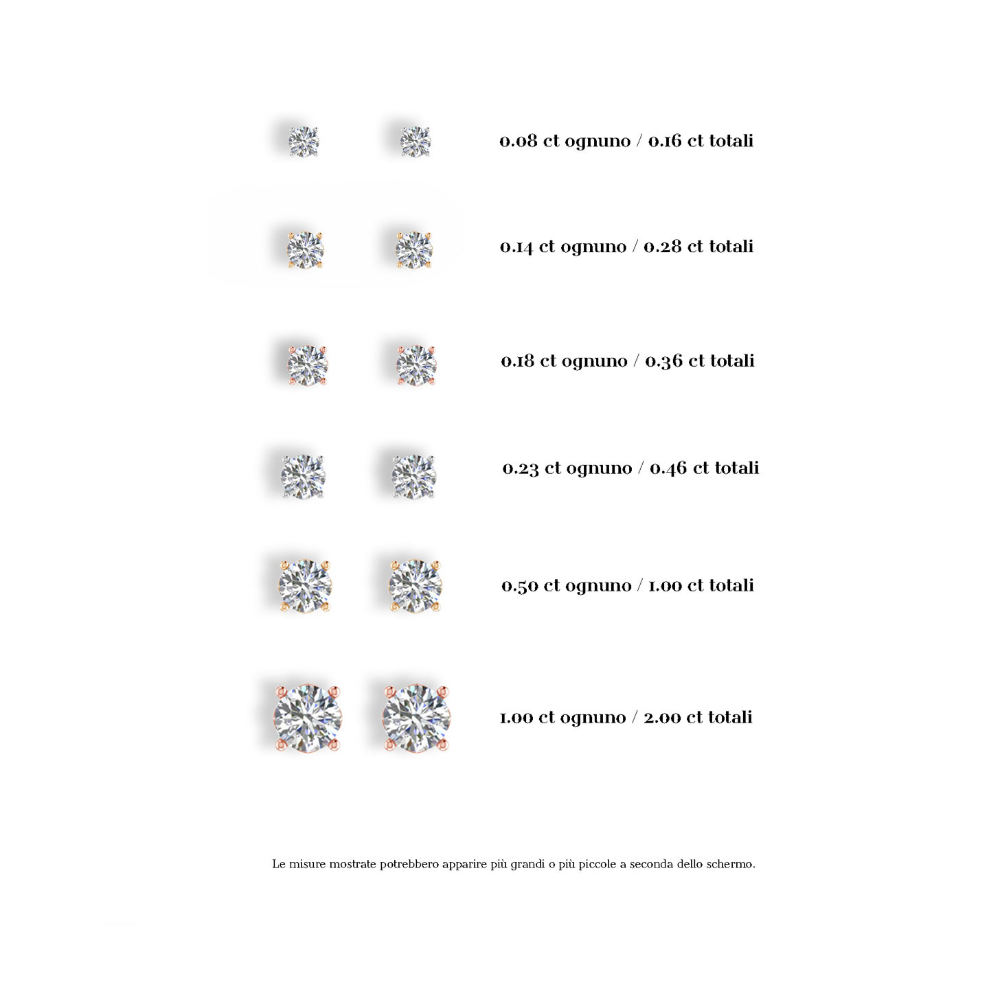 Orecchini punto luce con diamanti naturali taglio brillante certificati IGI Anversa, con quattro griffe, realizzabili in oro 18 k bianco, giallo o rosa.